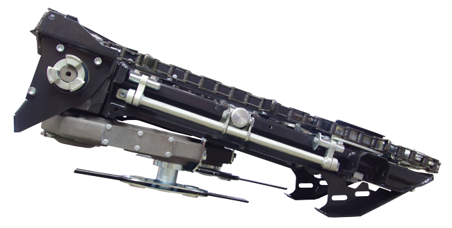 Gathering chains run on large idler sprockets that are forward-placed, in front of knife rollers, where overlapping chain fingers can grab, pull up and pull in stalks — a vital feature for picking up corn in less-than perfect conditions.